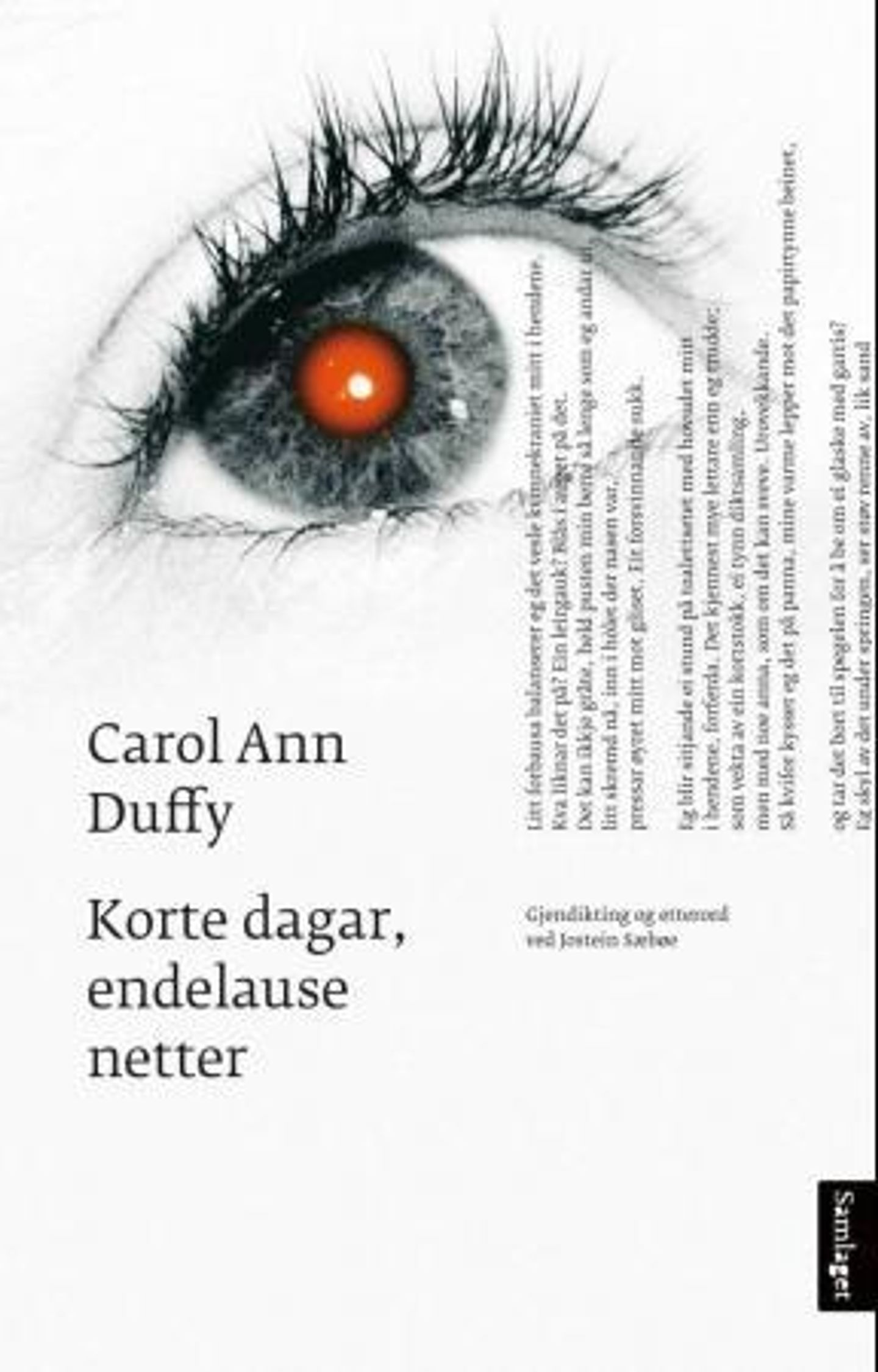 Jostein Sæbøes presentasjon av Carol Ann Duffys poesi på nynorsk er en stor og gledelig begivenhet, takket være Samlagets høyst prisverdige satsing med gode gjendiktninger ... Bildene er såre, sterke, originale, erkjennelsessøkende. Diktene har også en flyt, en muntlighet som virker mer spenstig og kompleks enn i mye av post-beatpoesien. Anbefales!